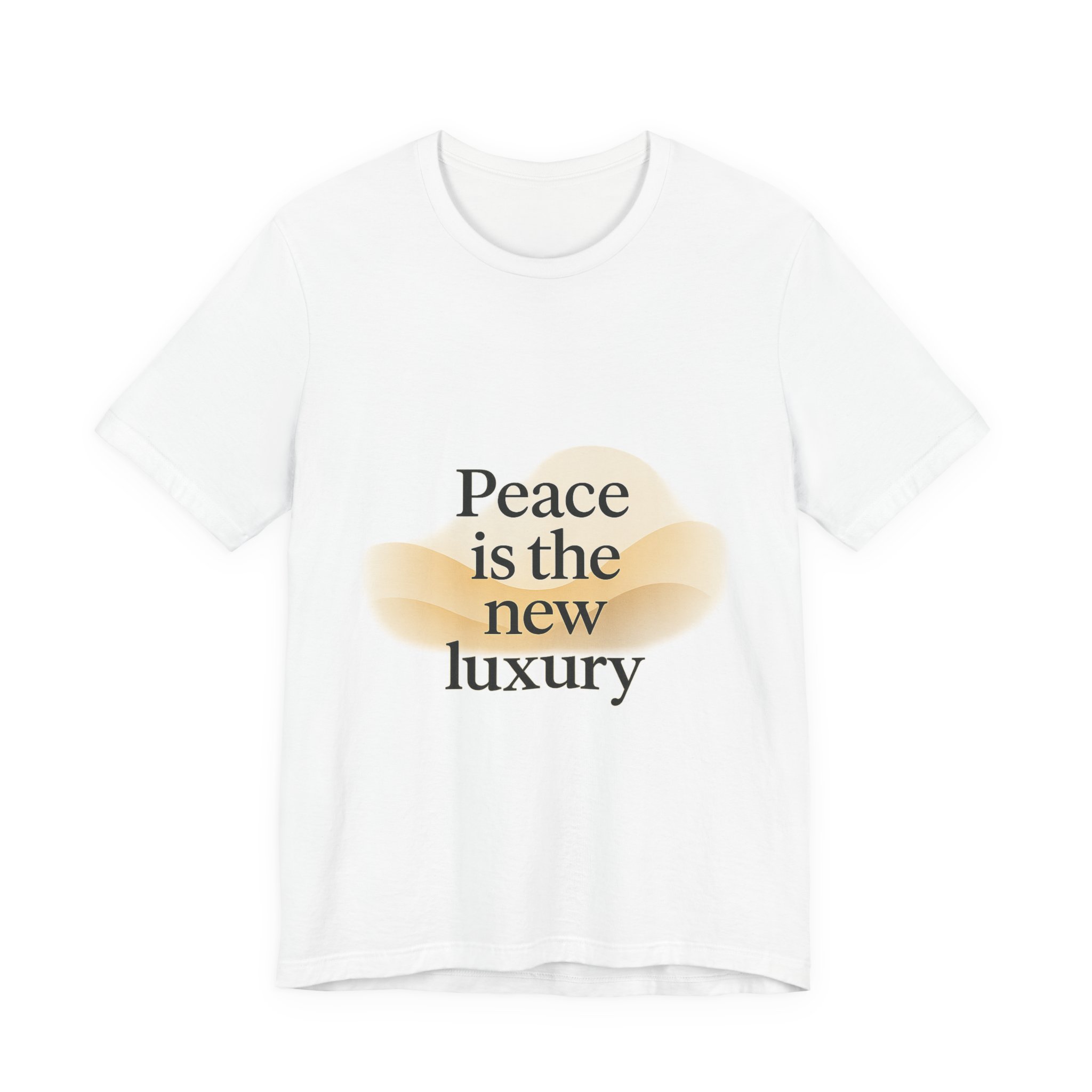 Elevate your wardrobe with this stylish Unisex Jersey Short Sleeve Tee, designed to offer both comfort and a modern aesthetic. This tee promotes a sense of peace and relaxation with its inspiring slogan, ‘Peace is the new luxury,’ perfect for anyone seeking a calm vibe in their daily life. Ideal for casual outings, yoga sessions, or just lounging at home, this shirt seamlessly enhances your lifestyle. It makes a thoughtful gift for friends and family on occasions such as birthdays, holidays, or even as a self-care treat. Embrace tranquility and style with this versatile tee that suits any laid-back event or celebration.