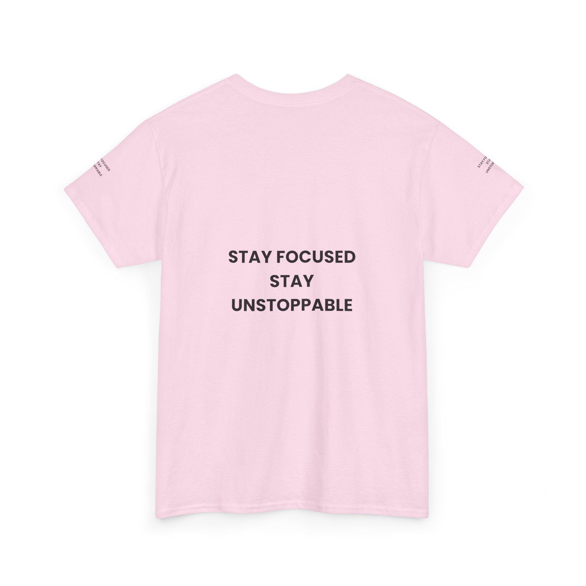 Elevate your casual wardrobe with this Unisex Heavy Cotton Tee, designed for both comfort and style. The motivational message, “Stay Focused. Stay Unstoppable,” sets an empowering tone that resonates with go-getters and dreamers alike. Perfect for daily wear, workouts, or relaxing days at home, this tee brings a positive vibe to any occasion. It’s ideal for friends, family, or anyone seeking inspiration during special moments like birthdays, graduations, or just everyday celebrations. Embrace confidence and style with this must-have addition to your closet!
